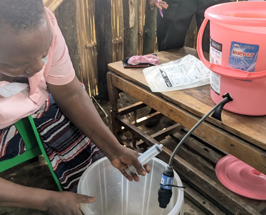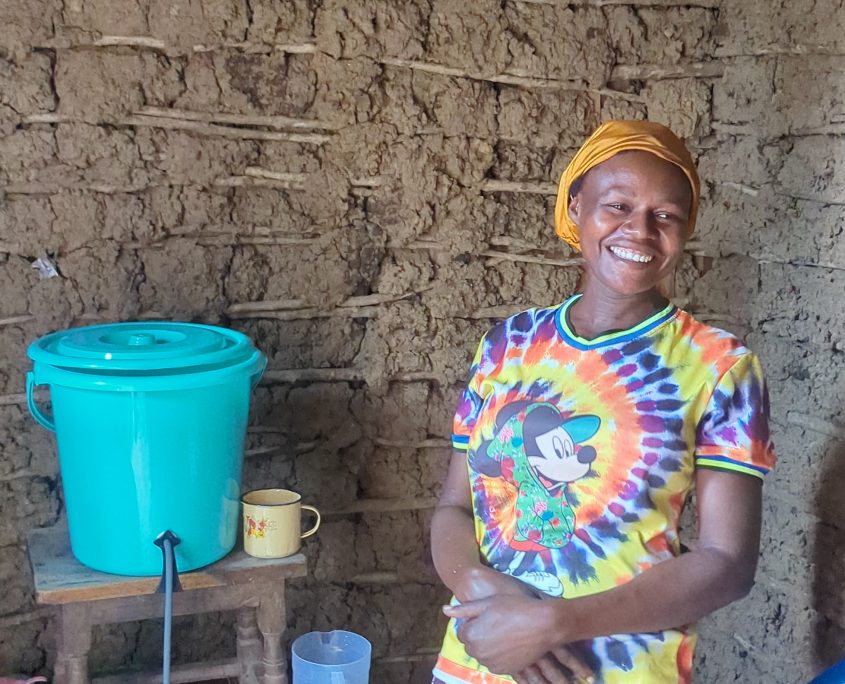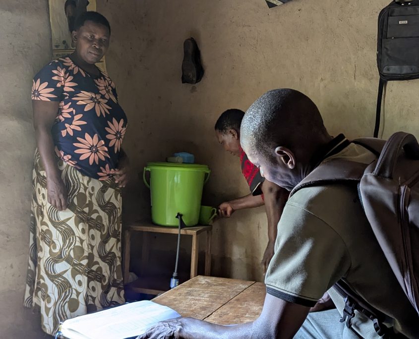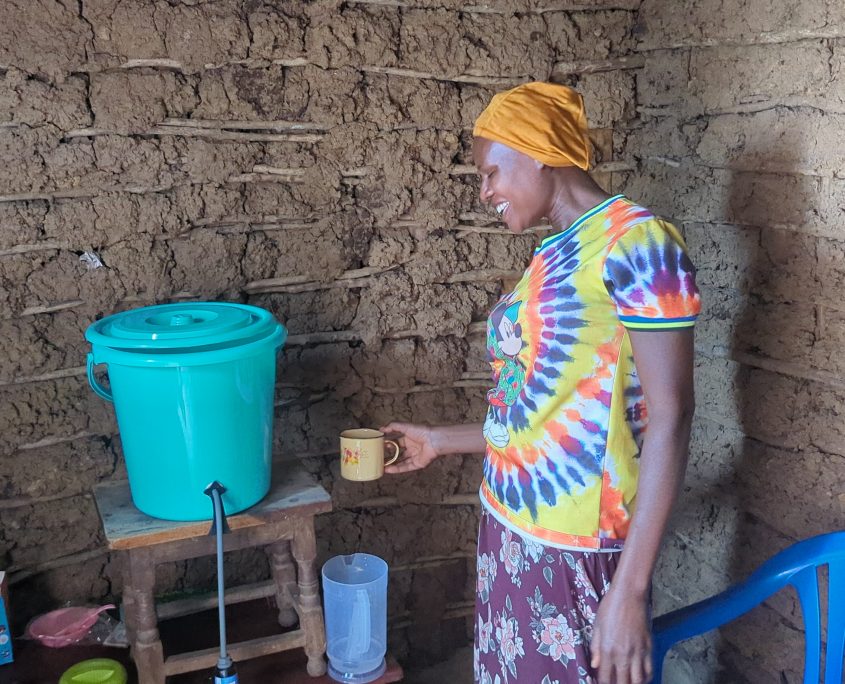 We also carry out follow-up visits to check on households, listen to their experiences, and provide refresher training. In some cases, we even train children so they can manage the filter when parents are away working in the gardens.